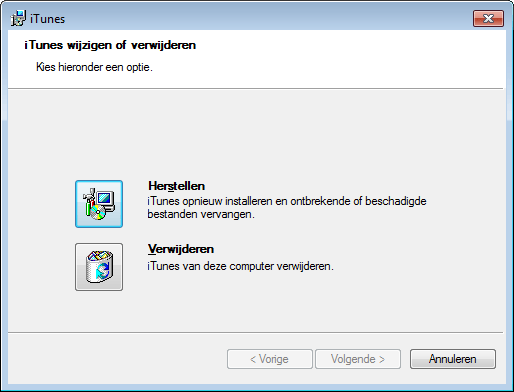 Bij problemen met het de-installeren kunt u het programma opnieuw installeren of repareren en het daarna alsnog verwijderen.