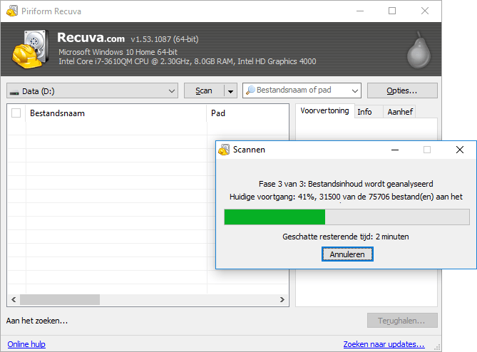 Haal je verwijderde foto's terug met Recuva