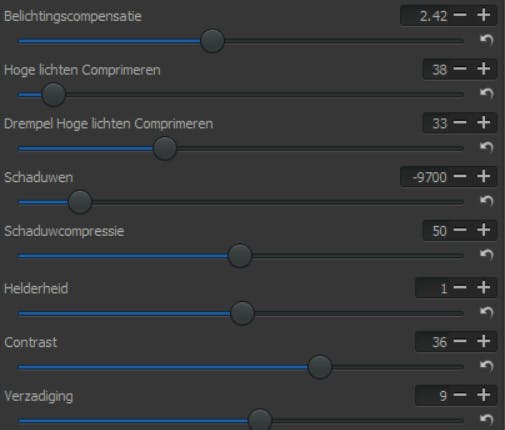 Als je een jpg-foto bewerkt en opslaat, is er geen weg meer terug. Je hebt de wijzigingen permanent aangebracht. Oké, je kunt het origineel bewaren (heel verstandig) en daarna opnieuw beginnen met bewerken, maar dat is veel werk als je bijvoorbeeld één bewerking uit een lange reeks wilt veranderen. Met raw gaat dat anders. Het originele raw-bestand blijft namelijk altijd intact en al jouw aanpassingen worden apart opgeslagen, al merk je daar verder niets van. Elke bewerking kun je daardoor tot in het oneindige blijven aanpassen, maar ook terugdraaien. Zonder dat de foto schade oploopt. Dat geeft enorm veel bewerkingsvrijheid. Rechts naast alle schuifregelaars in Raw Therapee vind je dan ook een Terug naar beginwaarde knop in de vorm van een gebogen pijltje. Zo haal je een specifieke bewerking snel weer weg, zonder een spoor achter te laten.