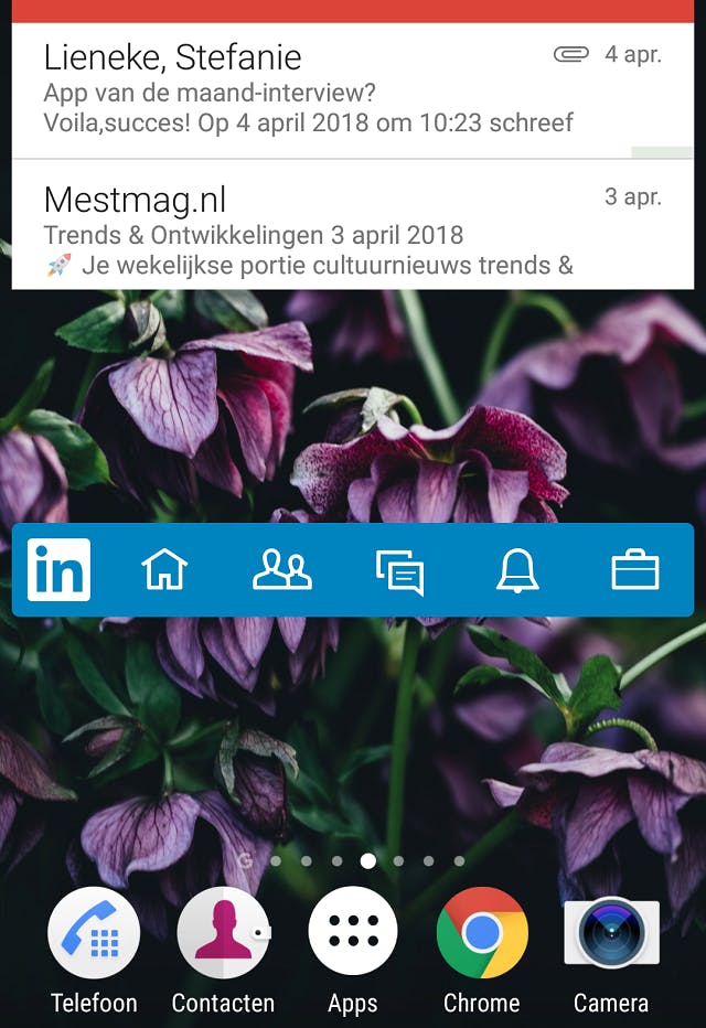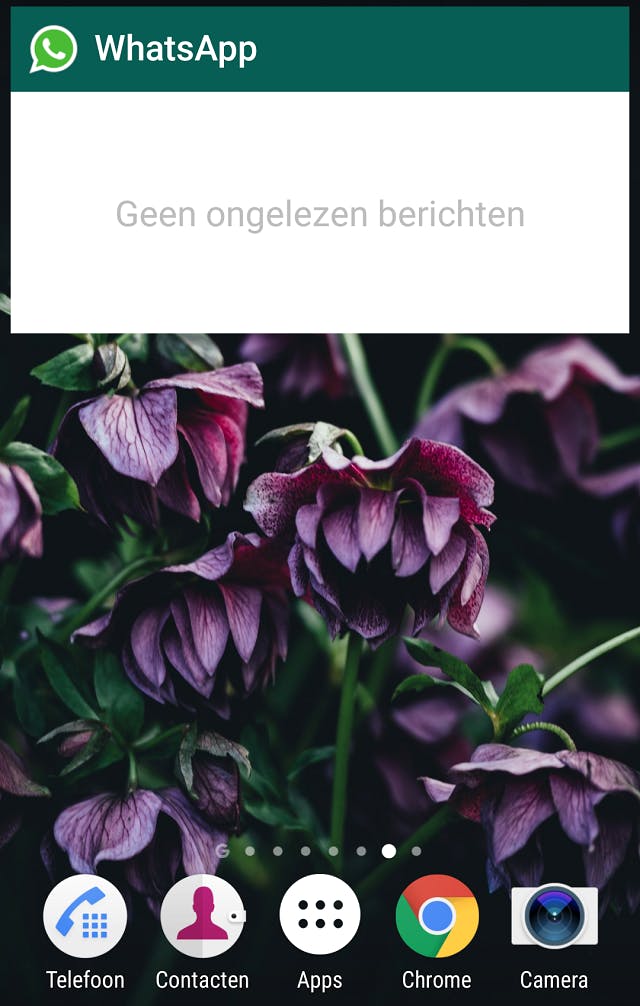 Ook Whatsapp biedt een widget aan waardoor je in een oogopslag je laatste appjes kan lezen. Handig hieraan is dat als je deze leest, ze nog niet als gelezen worden gemarkeerd, dus geen blauwe vinkjes! Dan kan je later in alle rust nog beslissen of je wil reageren of niet. (Android)