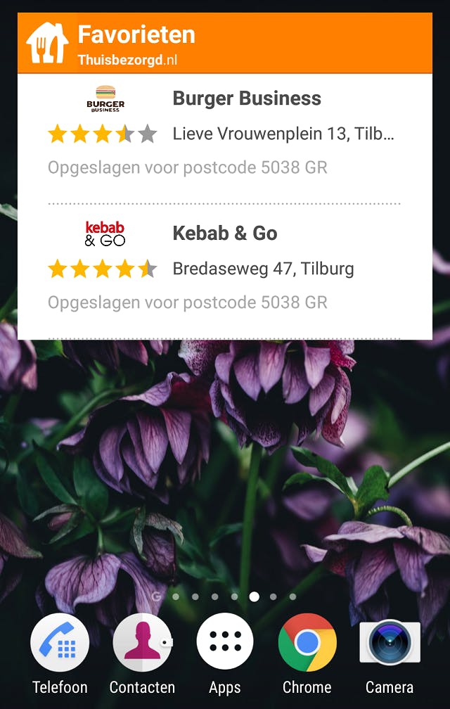 Als je niet houdt van koken of er simpelweg gewoon niet goed in bent, is thuisbezorgd natuurlijk een handige app. Ook zij bieden een widget aan waarmee je een direct overzicht hebt van de door jou als favoriet bestempelde restaurants. Een klik op het restaurant en je valt prompt in het menu. Een pizza bestellen was nog nooit zo makkelijk! (Android)