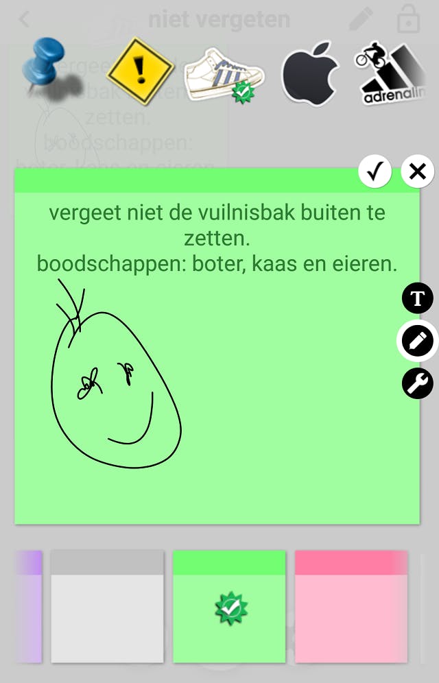 Met de Sticky notes widget creëer je een mapje op je startscherm waarin allerlei digitale post-its zijn opgeslagen. Kies zelf de kleur van je post-it, schrijf erop wat je niet mag vergeten en zet er een leuke krabbel bij. Op die manier hou je al je gedachtegangen ordelijk bij elkaar en ziet het er nog gezellig uit ook nog. Daarnaast is een pluspunt van deze widget dat je het mapje op je startscherm erg klein kunt maken waardoor het amper ruimte inneemt. (Android)