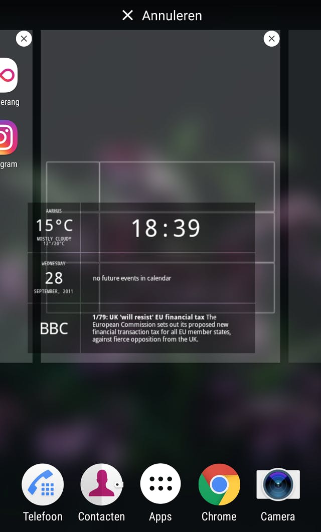 Onder het kopje ‘widgets’ vind je vervolgens alle widgets die op jouw telefoon beschikbaar zijn en die je dus net gedownload hebt. Je plaatst deze vervolgens makkelijk door je duim ingedrukt te houden op de widget zelf en hem vervolgens naar een gewenste plek te slepen.