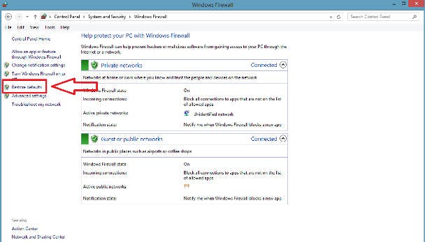 Ga naar Control Panel > System and Security > Windows Firewall, en klik in het linker paneel op Restore Defaults. Bevestig wat je wilt doen, en klaar is Kees! (Wees deze keer wat voorzichtiger.)