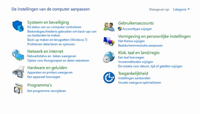 De snelste manier om dat te doen is door op de knop Start te klikken of op de starttoets te drukken op je toetsenbord en Configuratiescherm in te typen. Je ziet het oude vertrouwde pictogram direct verschijnen en wanneer je daarop klikt, opent het Configuratiescherm met (bijna) alle opties die je gewend bent. Het is een tikje omslachtig, maar je kunt het menu Instellingen natuurlijk ook volledig negeren als je wilt.