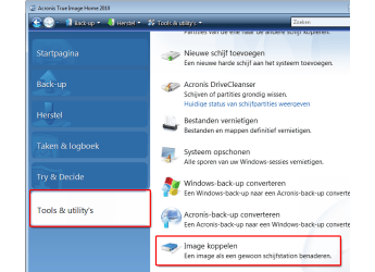 Open een Acronis True image-bestand via Tools & Utilities / Image koppelen om bestanden selectief terug te zetten uit uw back-up.