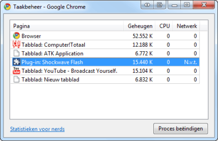 Chrome Taakbeheer is handig om gecrashte tabs of plug-ins af te sluiten.