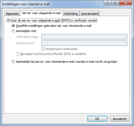 Om mail via andere netwerken/internetproviders te versturen moet u vaak gebruikmaken van SMTP-verificatie.