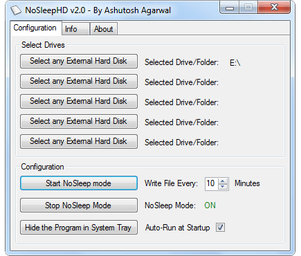 De stand-by-stand van een externe schijf kan Windows vertragen, NoSleep voorkomt dat de schijf in slaap valt.