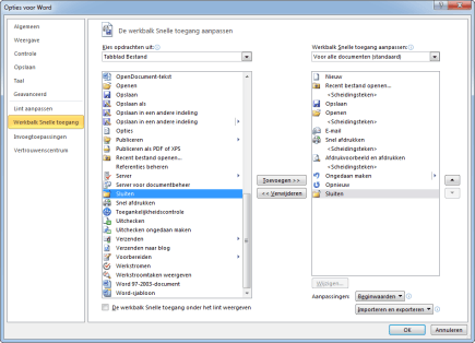 Voeg het afsluiten van een document toe aan de werkbalk Snelle Toegang.