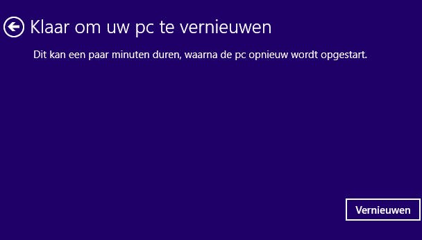 Kies voor Uw pc vernieuwen om het actieve herstelmoment terug te zetten.