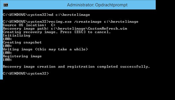Geef de opdracht om een nieuw herstelimage aan te maken in de map C:\herstelimage.