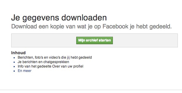 3. Klik op Mijn archief starten en er wordt een backup gemaakt (foto 3). Het maken van een backup kan overigens enkele uren in beslag nemen en hang af van de hoeveelheid data jij ooit hebt geplaatst.
