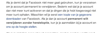 4. Klik op het laatste deel (met de tekst "ons op de hoogte stellen") en dan wordt je meteen naar de verwijderpagina gebracht. Volg de instructies die je dan krijgt en jouw account wordt volledig verwijderd.