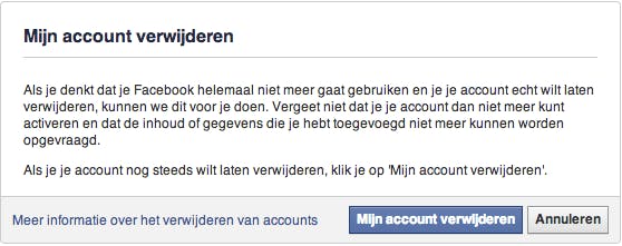 Als je de backup binnen hebt dan kun je het Facebookaccount verwijderen. Dat doe je zo: