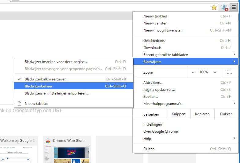 We kijken nu eerst hoe je bladwijzers uit Chrome moet exporteren, dus als je deze stap hebt doorlopen kun je het volgende stuk overslaan.