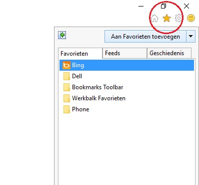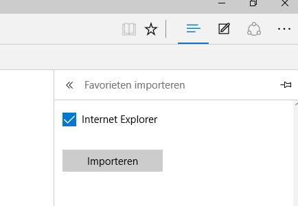 Je kunt je bladwijzers niet direct importeren in Edge. De browser kan namelijk alleen bladwijzers importeren vanuit Internet Explorer, een vreemd en eigenlijk best vervelend obstakel. Start eerst Internet Explorer op. Dat is even zoeken, want Microsoft heeft de browser goed verstopt. Je kunt IE vinden onder 'Start' -> 'Alle apps' -> 'Accessoires'. Daar staat de browser bovenaan het lijstje. Je kunt ook altijd op 'Start' klikken (of de Windows-toets indrukken) en beginnen te typen. Internet Explorer komt dan vanzelf naar boven. Klik in het menu rechtsboven op het sterretje, de 'Favorieten'. Je krijgt er een menu te zien met al je huidige favorieten.