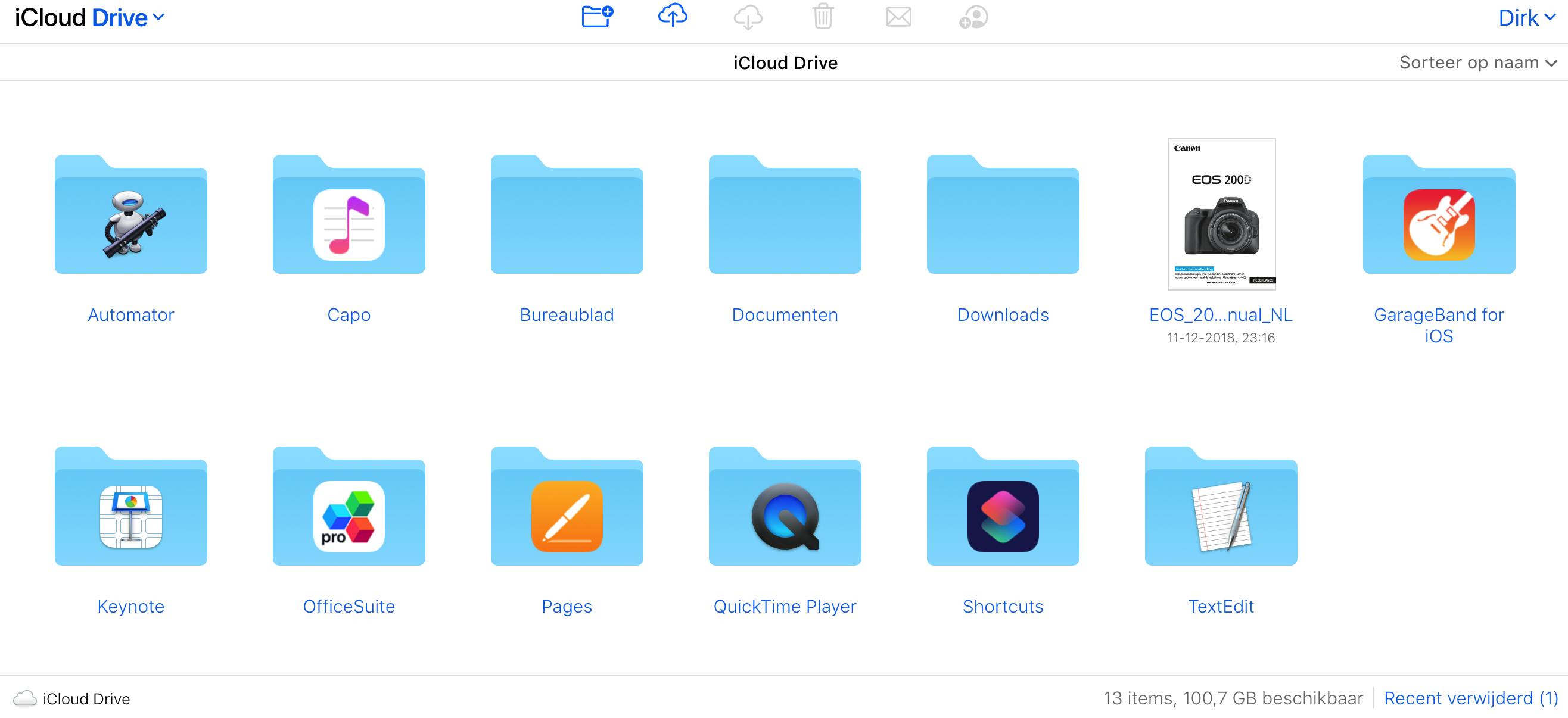 Uiteraard blijft de eerste stap even kijken hoeveel ruimte je nog hebt. Daarvoor check je in op de iCloud-portal. Onder in de statusbalk van dit scherm lees je hoeveel ruimte er nog vrij is.
