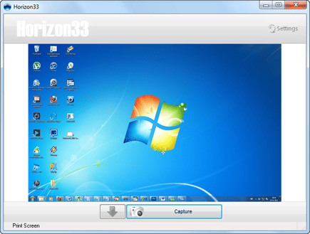 Het idee achter Horizon 33 is dat het maken van schermafbeeldingen geen taak is waar u zich actief mee bezig wilt houden. Oftewel, het programma moet eenvoudig in te stellen zijn, zich koest houden op de achtergrond, en doen wat het doen moet zodra dat nodig is. Aangezien Horizon33 een vrij basaal programma is, zou u kunnen overwegen om te kiezen voor het ingebouwde Knipprogramma in Windows (Vista en 7). Maar als Horizon33 nét die ene functie heeft die u mist in het Knipprogramma, hoeft geen heel uitgebreid pakket te installeren. Minimalistisch is Horizon 33 dus zeker, met slechts drie knoppen in het hoofdvenster. Dat voorspelt wellicht niet heel veel goeds over de hoeveelheid opties, maar toch valt dat in werkelijkheid mee.