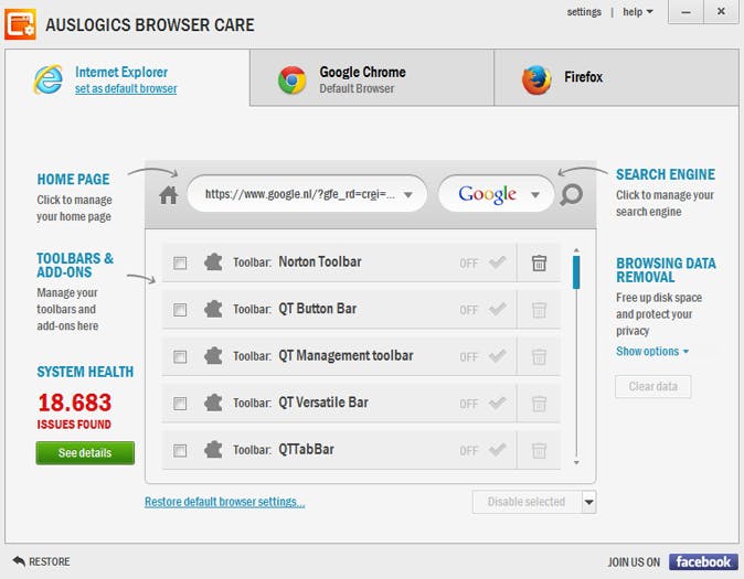 Auslogics Browser Care biedt een handige oplossing om je webbrowser in goede conditie te houden.