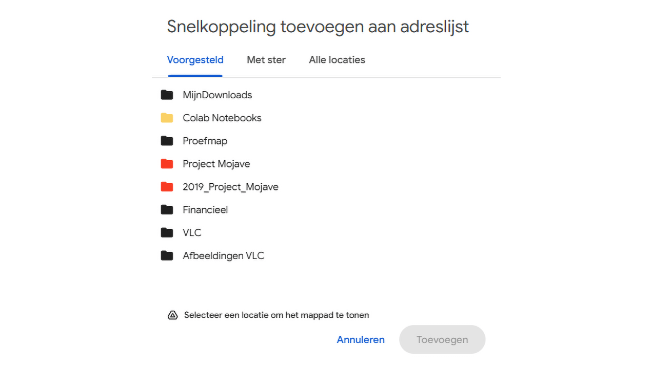 Met één muisklik open je een pop-up waarin de inhoud van je Google Drive te zien is.