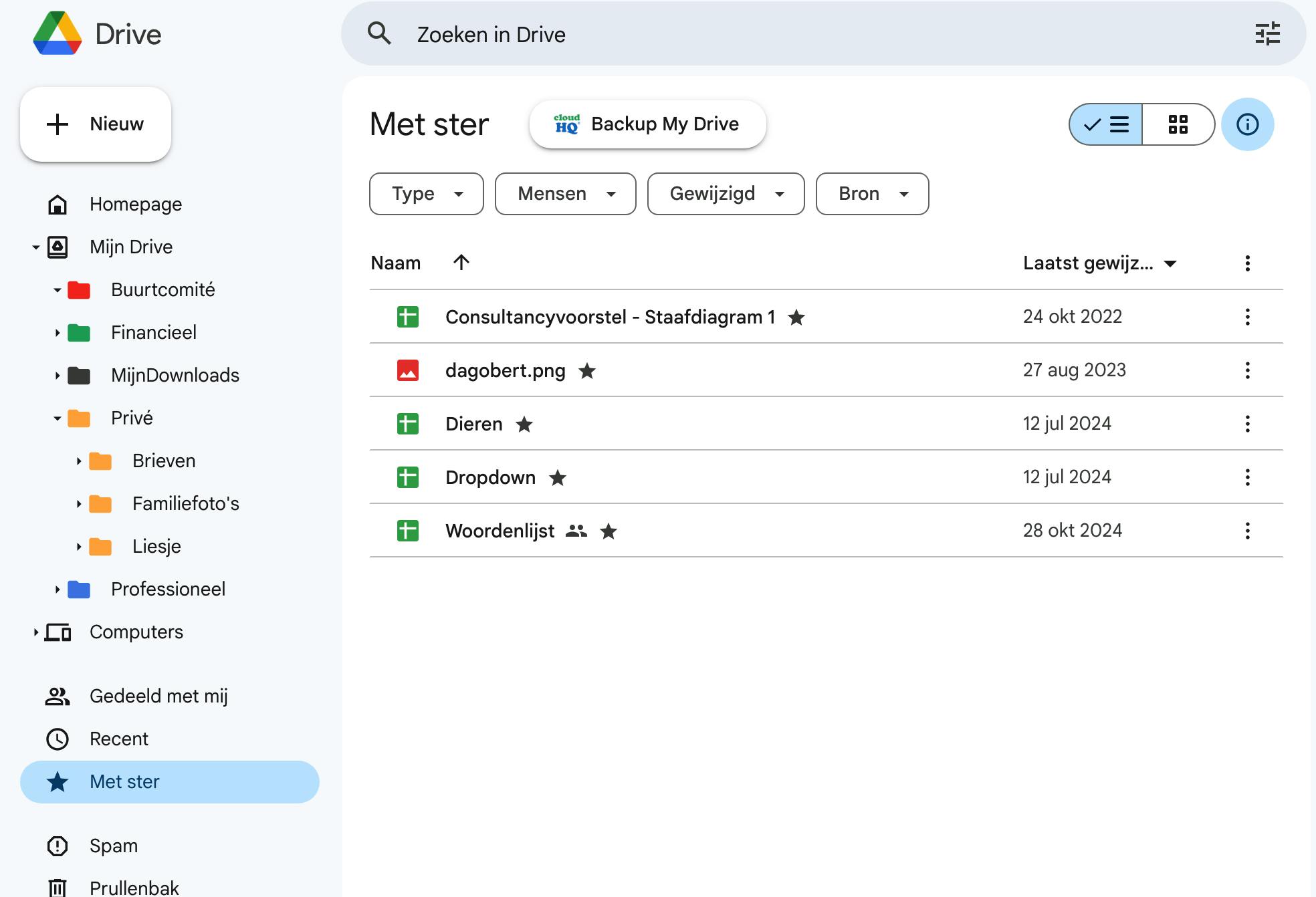De sterren van Google Drive besparen je veel zoekwerk. Door een document een ster te geven, kun je een bestand snel terugvinden zelfs wanneer het diep in de mappenstructuur is begraven. Klik op de categorie Met ster en je krijgt uitsluitend deze gemarkeerde bestanden te zien.