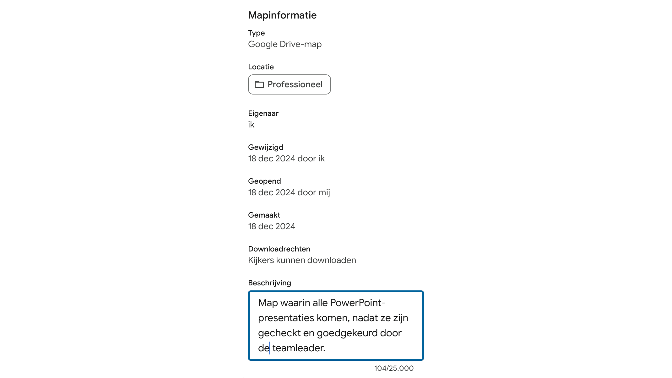 Elke map en elk bestand kun je voorzien van informatie en richtlijnen.
