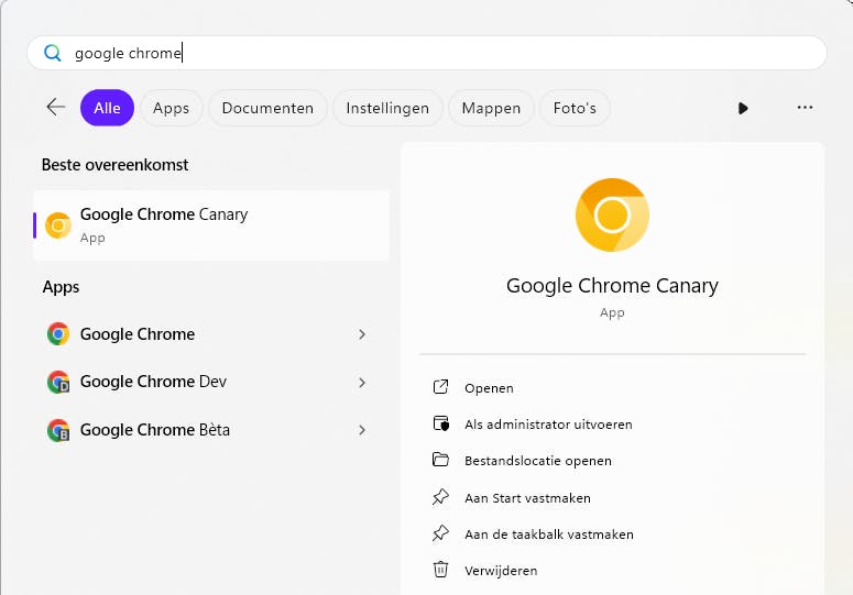 Browsers updaten zichzelf doorgaans automatisch, maar voor vroege versies moet je intekenen op het gewenste kanaal. Voor Chrome bezoek je deze pagina, waar je voor verschillende platforms, onder meer voor Windows (32- en 64-bit), Mac, Linux, Android en iOS, uit verschillende kanalen kunt kiezen.