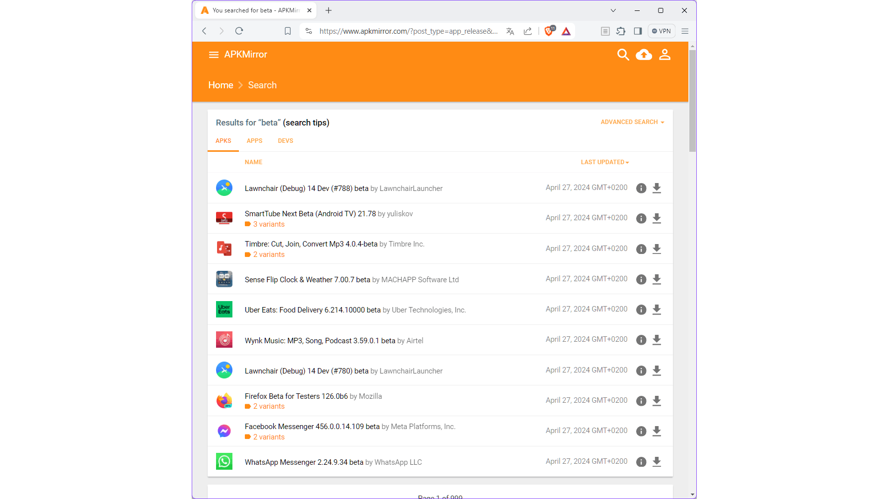 Sommige ontwikkelaars kiezen ervoor hun apps niet via de officiële Play Store te verspreiden, maar bieden een apk-bestand aan op hun eigen website. Je kunt dergelijke apps vinden op sites als www.apkpure.net/nl/app (kies voor Nieuwste bijgewerkte apps) of www.apkmirror.com (typ beta in de zoekbalk; met Advanced Search kun je filteren op ondersteunde Android-versies).
