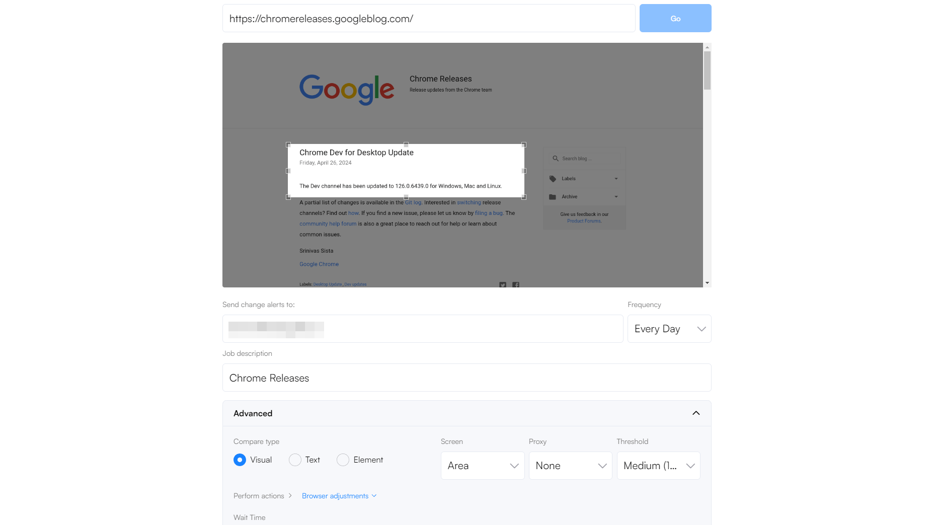 Sitemonitoring Voor sommige software is het lastig te bepalen of er een nieuwe (bèta)release beschikbaar is, tenzij je regelmatig de webpagina met release-informatie raadpleegt. Een alternatief is een (gratis) dienst die periodiek controleert of er wijzigingen op (specifieke delen van) die webpagina zijn doorgevoerd en je automatisch op de hoogte brengt, bijvoorbeeld via e-mail.