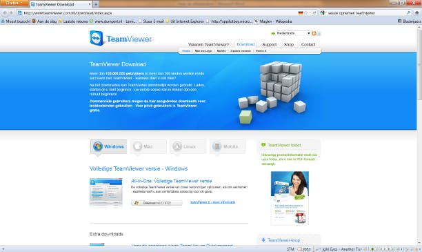 Zodra Crossloop voor u te beperkt is, biedt Teamviewer waarschijnlijk uitkomst. Dit programma heeft iets meer mogelijkheden dan Crossloop en u zet het programma gemakkelijker naar uw hand. Surf naar TeamViewer om het programma te downloaden. Het programma is slechts een paar MB groot, dus het staat binnen enkele tellen op uw computer. De installatie verloopt via een eenvoudige wizard waar u snel doorheen bent. Houd er wel rekening mee dat u aan moet geven dat u Teamviewer gebruikt voor persoonlijk gebruik, want voor zakelijk gebruik is dit programma niet gratis. Na de installatie kunt u direct aan de slag met Teamviewer. Als het programma niet standaard in het Nederlands start, kunt u deze instelling snel aanpassen. Ga rechtsboven in het venster naar Extras / Options, kies Advanced en selecteer in het volgende venster bij Language voor Nederlands. Herstart Teamviewer om de wijziging door te voeren.