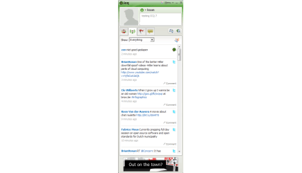 Met ICQ 7 kunt u dus vanuit één programma op de hoogte blijven van wat uw vrienden online doen. U hoeft dus niet uw browser te openen om naar alle verschillende pagina's van uw sociale netwerken te surfen. Als u de sociale netwerken koppelt, hoeft u een boodschap ook maar één keer te plaatsen om deze op verschillende netwerken te tonen. Met een klein icoontje wordt overigens altijd duidelijk aangegeven van welk netwerk een update komt.