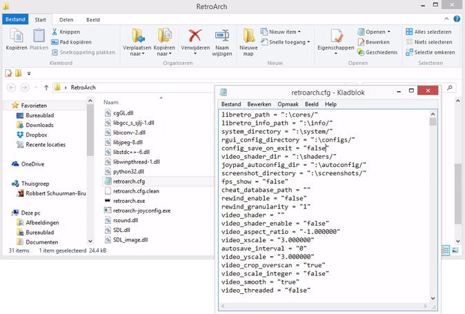Het programma RetroArch kan overweg met veel verschillende ROM-back-ups, waardoor je niet telkens een ander programma hoeft te installeren. Op deze website kun je twee archiefbestanden downloaden. Download eerst het archiefbestand RetroArch-v1.0.0.2.zip en pak de inhoud uit naar de map RetroArch. Maak in deze map een map met de naam cores aan. Download het tweede archiefbestand Cores-v1.0.0.2.zip en kopieer de inhoud naar de zojuist gemaakte map cores. Open in de map RetroArch het bestand retroarch.cfg met het kladblok. Verander de tekst config_save_on_exit = "true" naar config_save_on_exit = "false" en sla het bestand op.