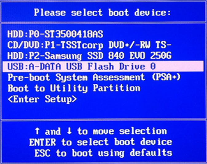 Tip 05 Geef in het bootmenu aan dat je wil opstarten van de usb-stick.