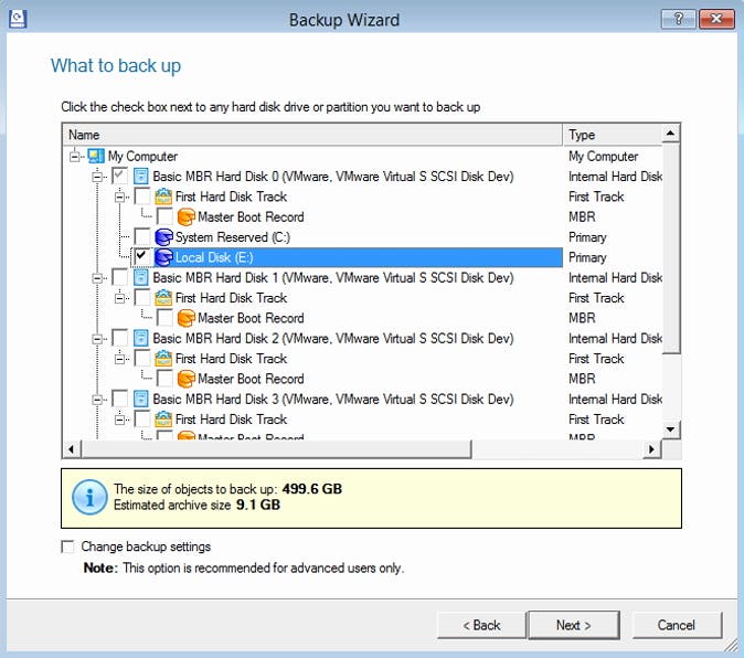 Tip 09 Selecteer de volumes waarvan je een back-up wil maken.