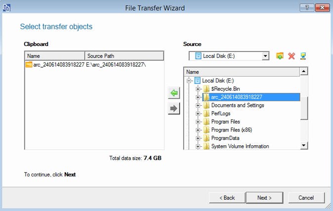 Stel dat een pc het vertikt om uit zichzelf op te starten, dan kun je meestal wel bij de inhoud van de harde schijf komen wanneer je opstart met deze geprepareerde usb-stick. Via deze weg kun je documenten, foto's en mediabestanden redden door ze te kopiëren naar bijvoorbeeld een externe harde schijf. Dat is een klusje voor de module File Transfer. Via de wizard kom je bij een venster waar je in de rechterkolom de inhoud leest van alle gegevensdragers die File Transfer herkent. Gebruik de pijlknoppen om de mappen die je nodig hebt in het klembord te plaatsen. Ben je klaar, dan klik je op Next om naar de locatie te navigeren waar deze tool de geselecteerde mappen en bestanden in veiligheid zal brengen.