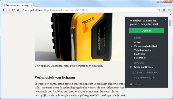 Als je op internet interessante informatie tegenkomt, bewaar je eenvoudig een kopie in Evernote. Hiervoor is het wel noodzakelijk dat je een plug-in installeert. Voor Chrome, Safari, Firefox, Opera en Internet Explorer zijn er versies beschikbaar. Surf naar deze website en klik op de downloadknop. Volg de aanwijzingen op het scherm om de plug-in in de browser te activeren.
