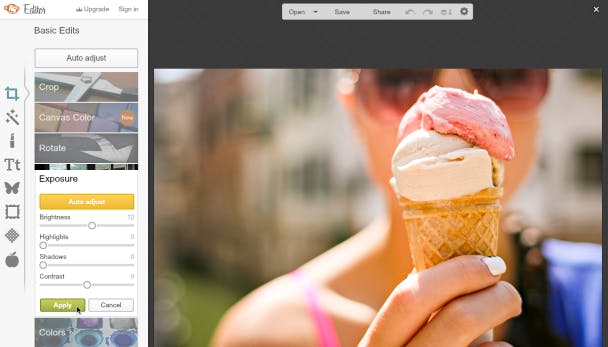 Ook interessant is Exposure. Met deze functie kun je onder andere de helderheid, hooglichten en het contrast onder handen nemen. Color maakt het mogelijk om de verzadiging en kleurtemperatuur aan te passen en via Sharpen kun je de foto verscherpen. Experimenteer met de mogelijkheden en gebruik de Apply-knop om je bewerkingen door te voeren.