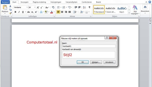 5. Klik op Ok en kies onder Opmaak de gewenste inhoudsopgave stijl.