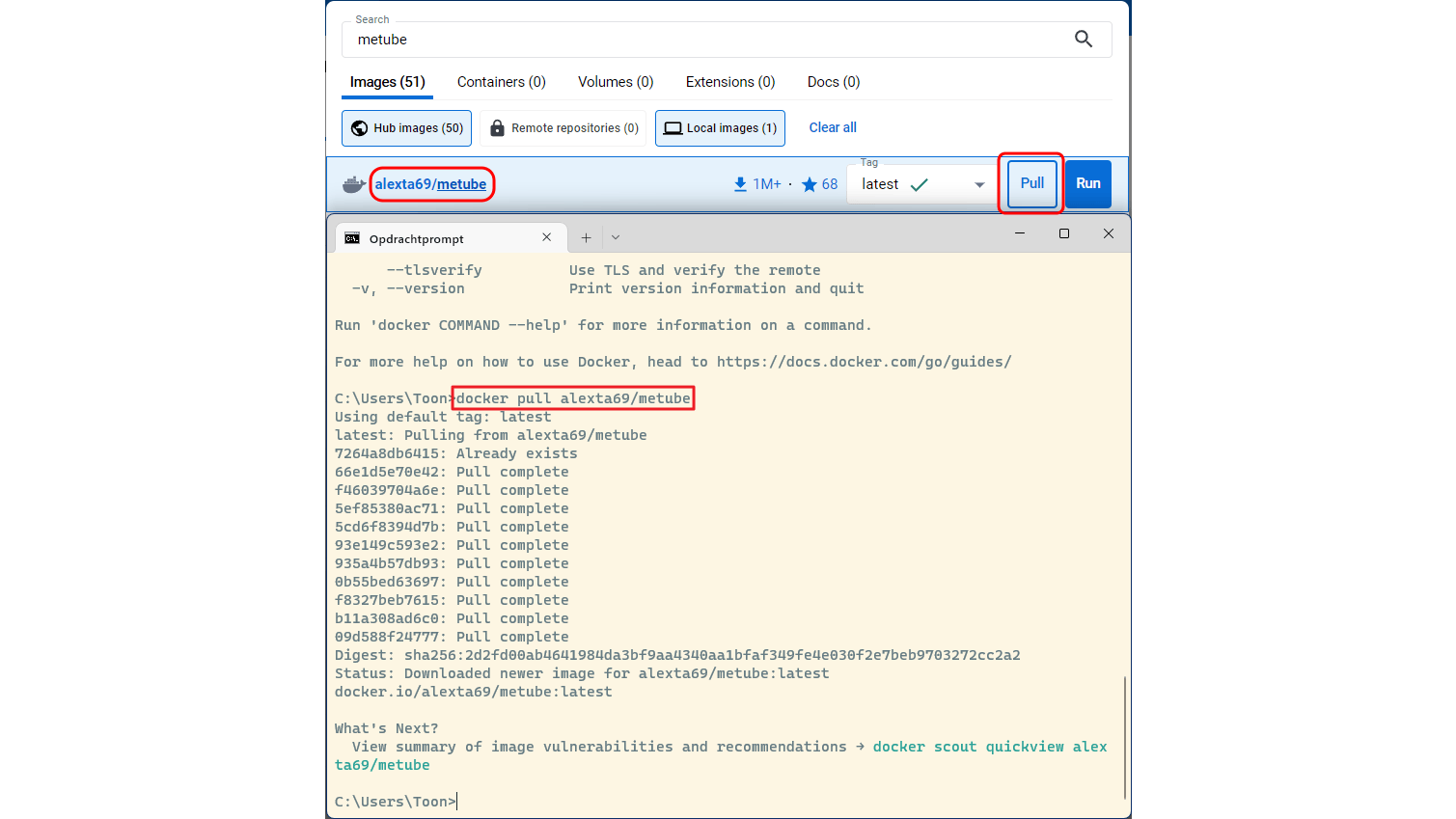 Het uitvoeren van een image kun je ook regelen vanaf de Opdrachtprompt met een Docker-commando, maar meestal moet je wel de juiste parameters kennen. Vaak vind je deze informatie op de website van de makers of via een zoekopdracht.