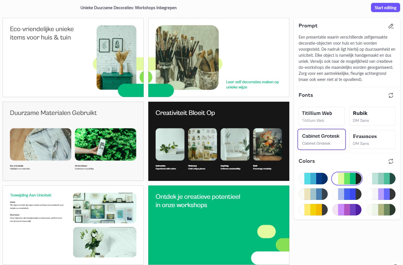 Een snel presentatie-ontwerp op basis van een uitgebreide AI-prompt.
