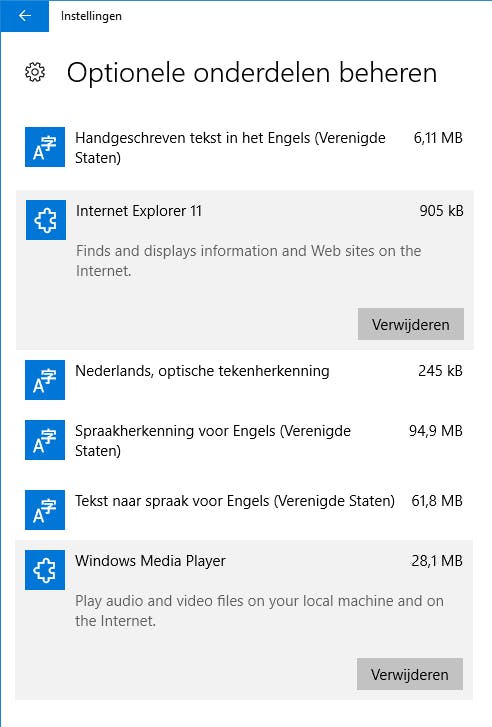 Programma's als Internet Explorer 11 en Windows Media Player zijn nauwelijks nog populair en allang ingehaald door andere software zoals Firefox, Google Chrome en VLC Media Player. In de Windows 10 Creators Updatre is het verwijderen van Internet Explorer 11 en Windows Media Player eenvoudiger gemaakt.