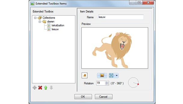 Je kunt ook je eigen 'bibliotheek' met vormen en afbeeldingen samenstellen.