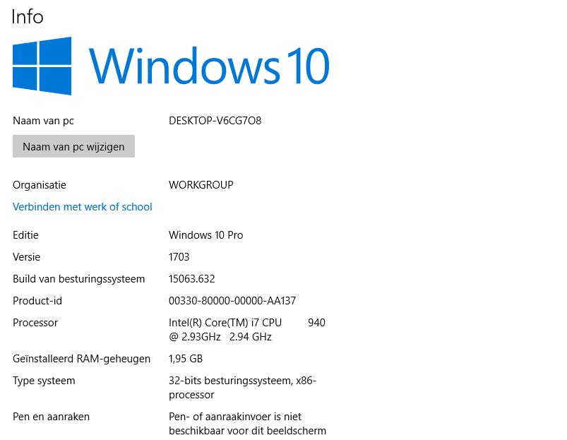 Start het hulpprogramma om een Windows 10 installatie-schijf of usb-stick te maken. Het aanmaken van een usb-stick is eigenlijk beter, omdat de installatie dan een stuk sneller verloopt. Het lezen vanaf een dvd-schijfje is namelijk relatief traag. Allereerst kies je u in de tool voor welke versie van Windows 10 je een opstartbare usb-stick wilt maken. Belangrijk is dat je hier exact de versie kiest van je huidige Windows 10-installatie. Hebt je de 32bit-versie, dan kies je bij architectuur voor 32-bits, en bij Taal kies je voor de huidige taalversie van Windows 10. Als je niet weet of je bestaande Windows 10-installatie 32 bit of 64 bit is, dan kun je dat als volgt opzoeken: ga naar Instellingen, klik op Systeem en kies links onderin voor Info. Bij de weergegeven informatie zie je bij Type systeem staan welke architectuur wordt gebruikt . Je kunt geen 32bit-versie op een computer installeren waarop de 64bit-versie van Windows 10 stond of andersom, omdat Windows 10 dan niet meer geactiveerd kan worden.