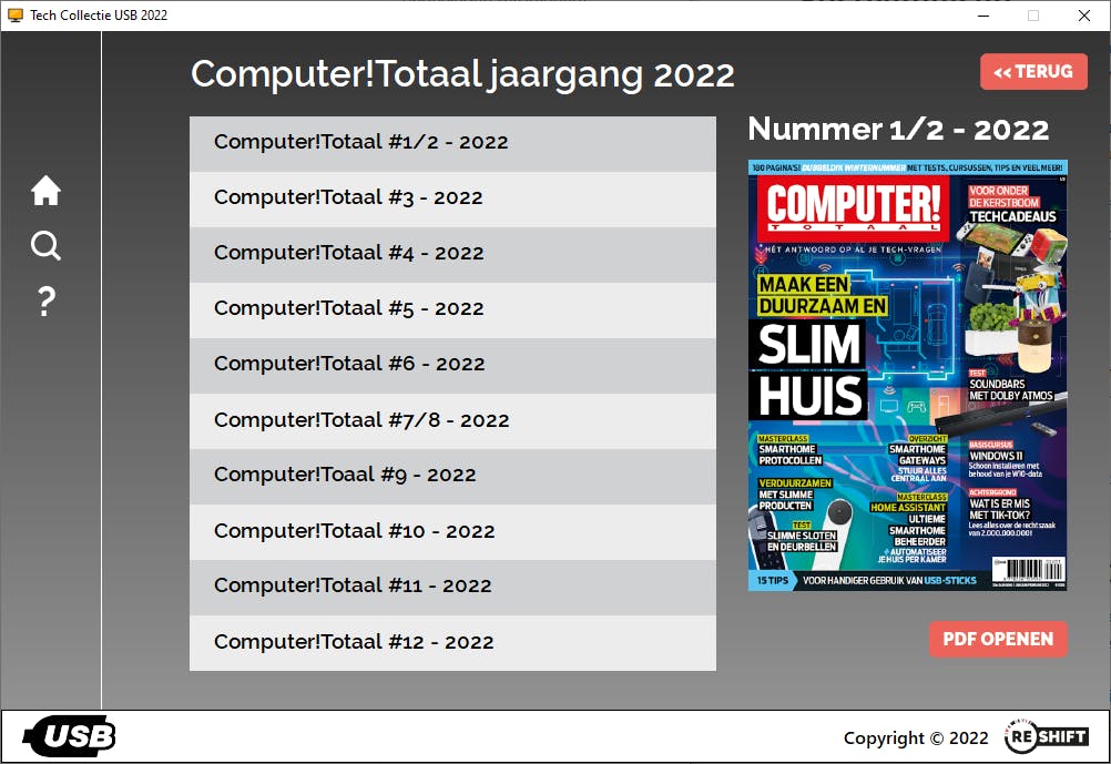 Windows-gebruikers kunnen het programma collectie.exe opstarten vanaf de usb-stick of dvd. Via dit programma kun je navigeren tussen de verschillende uitgaven en digitale uitgaven in de vorm van pdf-bestanden direct vanuit het programma openen.