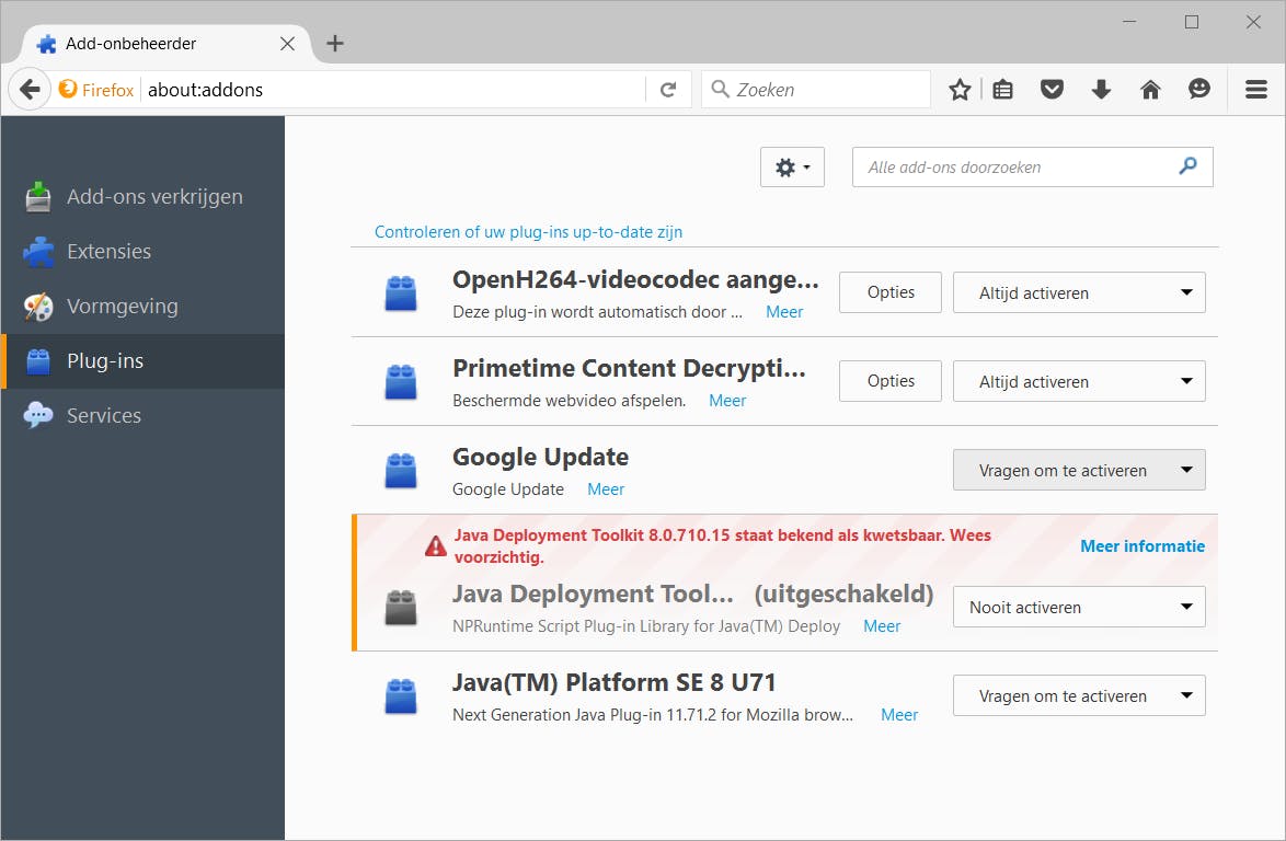 Zorg ervoor dat zo veel mogelijk plug-ins niet automatisch geactiveerd kunnen worden.