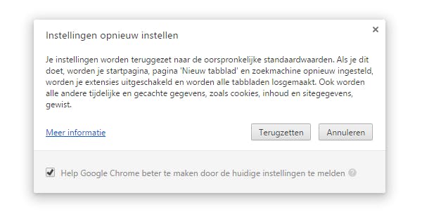 Na het uitvoeren van de Chrome Clean-up Tool worden de standaardinstellingen van Chrome hersteld.