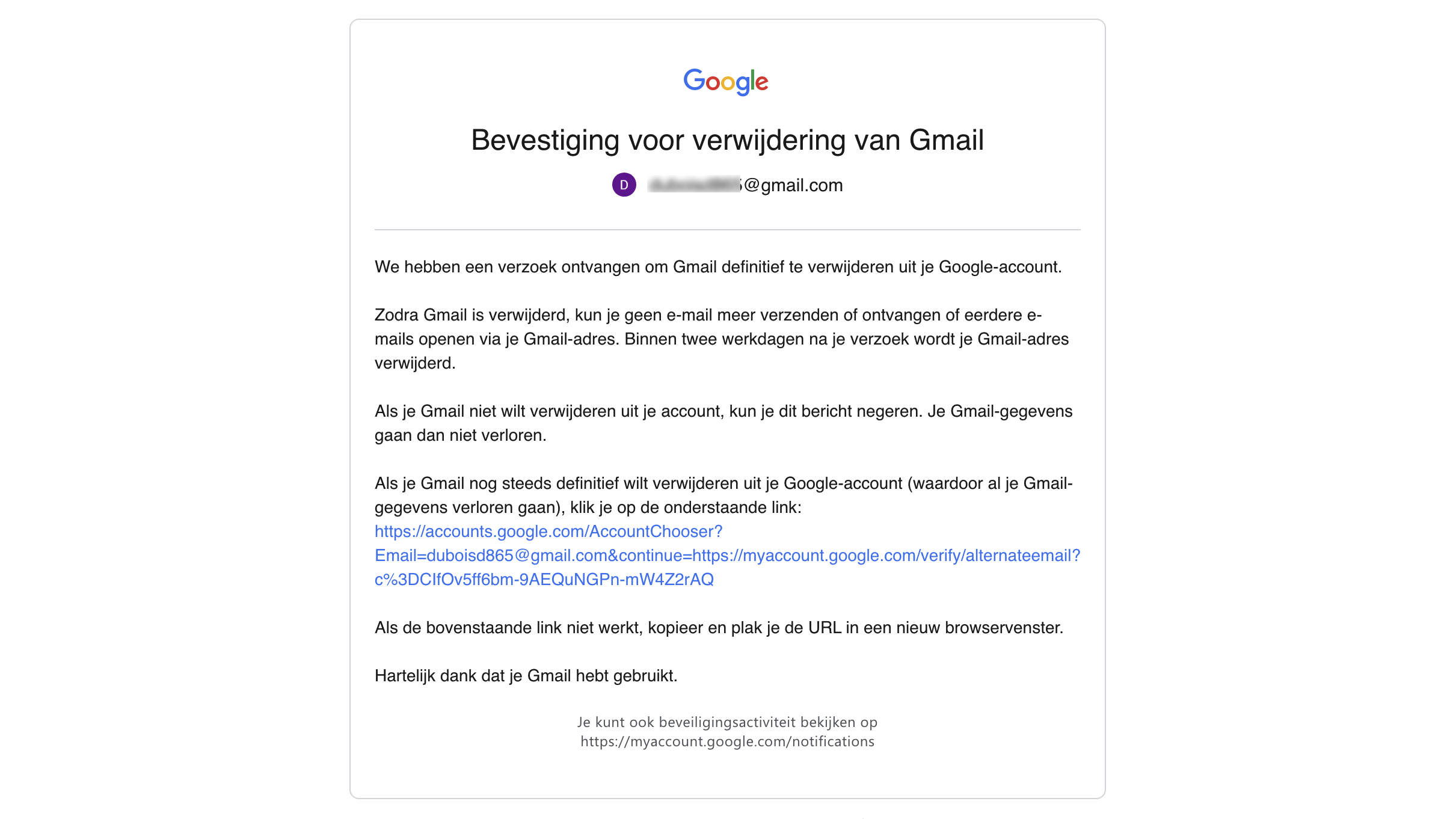 Wie in aanmerking komt om definitief verwijderd te worden, zal meerdere meldingen ontvangen voordat de internetreus het account definitief opruimt. Bovendien zal Google meldingen verzenden naar alle gekoppelde herstel-e-mailadressen. Om te vermijden dat jouw slapende account wordt weggehaald moet je simpelweg teken van leven geven. Als Google-gebruiker kun je bijvoorbeeld een e-mail openen of verzenden, Google Drive gebruiken, een zoekopdracht in Google uitvoeren of een YouTube-filmpje bekijken terwijl je met dat account bent aangemeld.