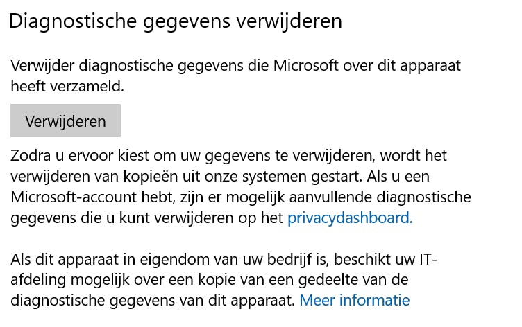 De recente versies van Windows 10 hebben de mogelijkheid om te tonen welke persoonlijke gegevens in de loop van de tijd over je zijn verzameld. Je vindt deze mogelijkheid in het instellingenvenster Privacy, in de sectie Diagnostische gegevens en feedback. Blader naar het onderdeel Diagnostische gegevens weergeven. Standaard is de instelling die dit aangeeft uitgeschakeld en daar brengen we snel verandering in. Zet de schuif op Aan en klik vervolgens op De viewer voor diagnostische gegevens openen. Helaas is de viewer niet heel gebruiksvriendelijkheid, maar als je de tijd neemt om het bestand door te nemen, zie je uiteindelijk wel welke gegevens worden gedeeld. Je krijgt daarmee een goed beeld van de hoeveelheid en het soort gegevens dat wordt gedeeld. Nu je een beeld hebt van de verzamelde gegevens en in de vorige stappen zoveel mogelijk opties hebt afgeschermd, kun je ervoor kiezen om persoonlijke gegevens die in het verleden zijn verzameld, te verwijderen. In de sectie Diagnostische gegevens verwijderen klik je op de knop Verwijderen. Ook gegevens die op servers van Microsoft zijn opgeslagen, worden bij deze actie verwijderd. Mogelijk wordt niet alle informatie verwijderd. Om hiervan een beter beeld te krijgen, open je je persoonlijke privacydashboard (zie tip 4).