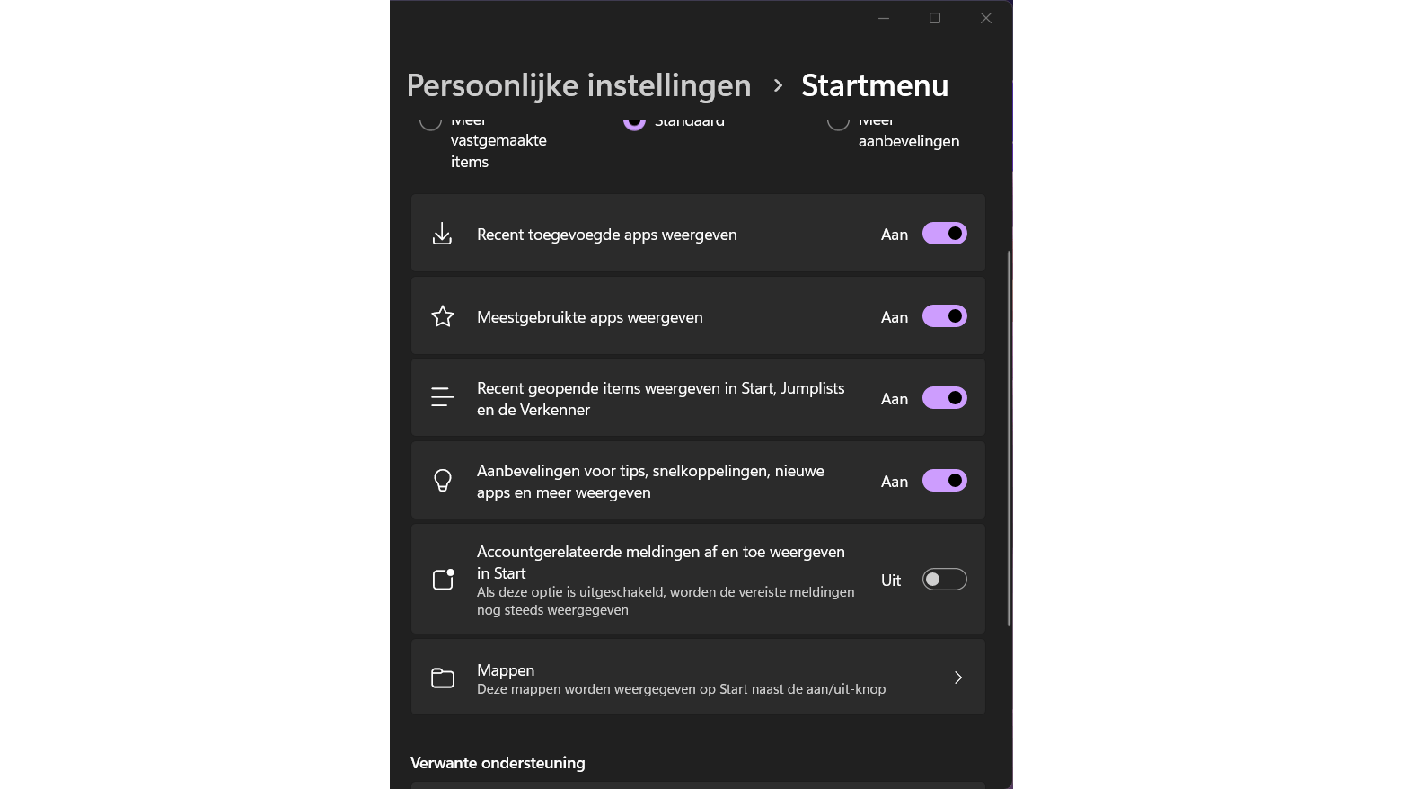 - Advertenties in het startmenu
